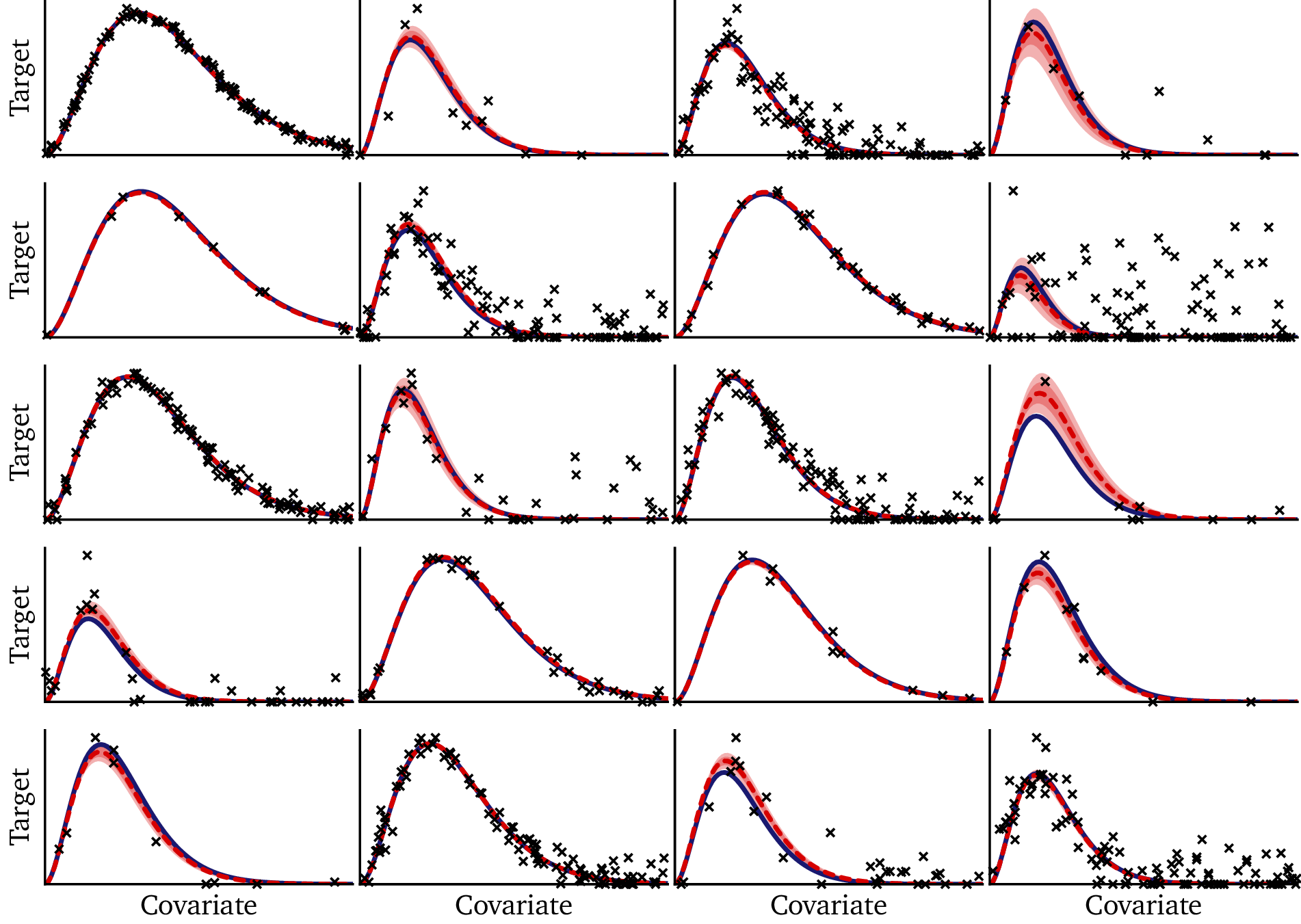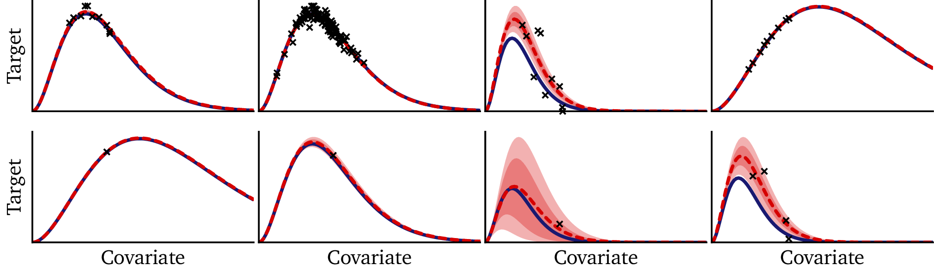 The result is a modeling framework that shines exactly where hypernetworks struggled: small datasets, noisy datasets, and predictions outside the training distribution. Even more, Bayesian models don’t just predict values — they also tell you how uncertain those predictions are.